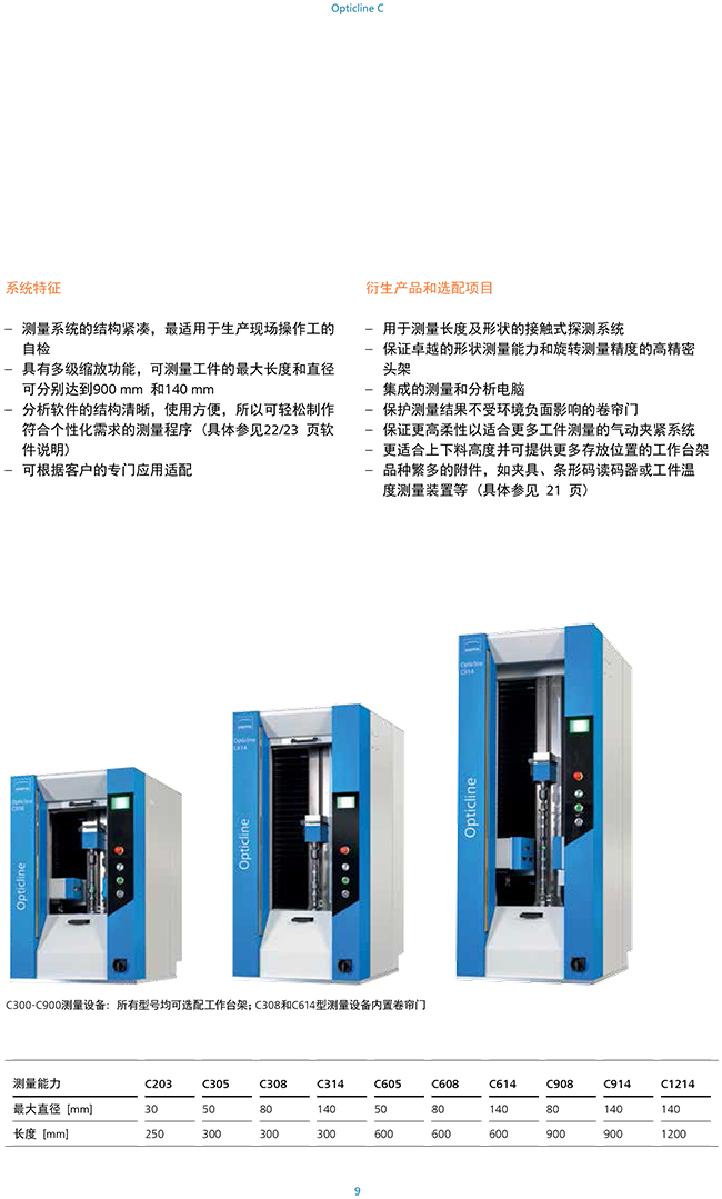 我们在 Opticline C ����� �������Ƴ������������ �������Ƴ������������ �������Ƴ������������ �������Ƴ�������系列内提供不同的型号。这些型号的工件能力各不����� �������Ƴ������������ �������Ƴ������������ �������Ƴ������������ �������Ƴ�������相同。您可以选择完全满足自己要求的测量����� �������Ƴ����������� �������Ƴ������������ �������Ƴ������������ �������Ƴ�������系统。较小和较大的工件(可达 900毫米)����� �������Ƴ������������ �������Ƴ������������ �������Ƴ������������ �������Ƴ�������可测量到微米级别。